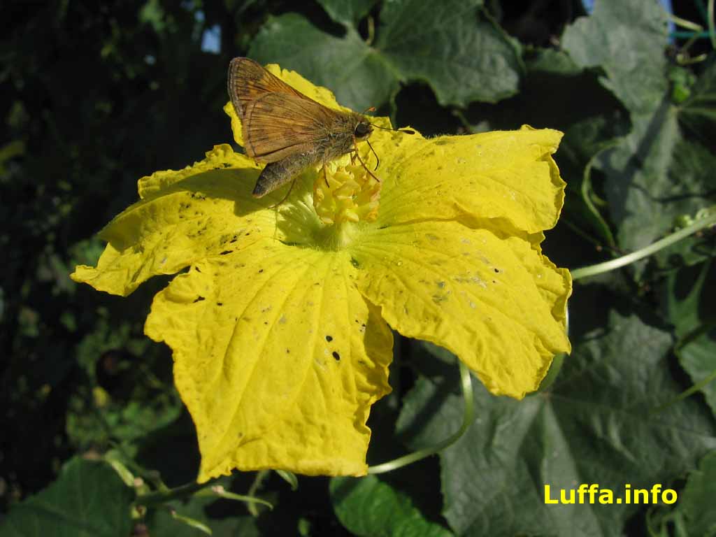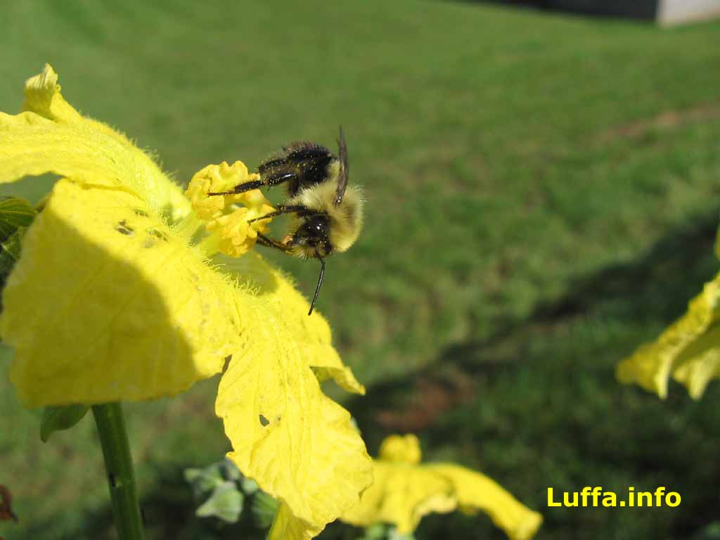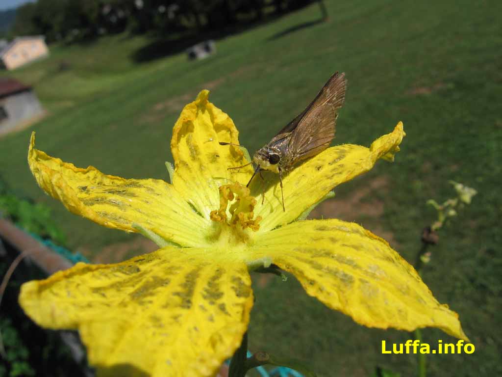 Welcome to the luffa flower garden. Many colorful insects including butterflies and moths visit the blooms. Bumblebees have a special affinity for the large bright yellow luffa flowers. Ants are attracted by small plant structures at the base of flower buds and wander all over the vines. Put some summer sunshine on your screen by viewing these photos of luffa pollinators at work. Click to view.
